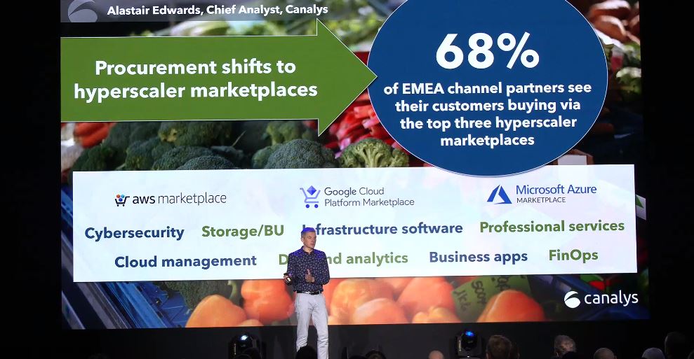 Fra i colossi è impossibile non chiamare in causa i tre maggiori hyperscaler del mercato (Aws, Microsoft Azure e Google Cloud), il cui business combinato ha ormai superato i 300 miliardi di dollari. Di loro ha parlato Alstair Edwards, Chief Analyst di Canalys, sottolineando che “Oggi il 68% dei partner di canale Emea afferma che i clienti stanno ormai comprando in modo consolidato sui marketplace di questi tre hyperscaler. Una domanda crescente che, comunque, continua a riconoscere un ruolo importante ai partner di canale, chiamati a offrire consulenza, supporto implementativo, servizi di gestione e a mettere al sicuro gli ambienti di lavoro” spiega Edwards, rimarcando la proliferazione ormai quasi incontrollata dei marketplace. La sua raccomandazione è chiara: occorre lavorare alla semplificazione, creando ecosistemi il più possibile aperti.