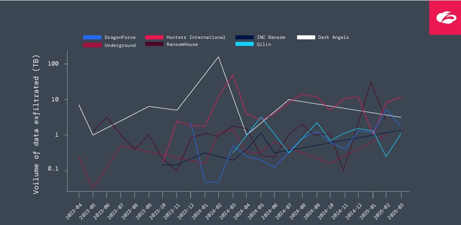 Inoltre, è evidente la corsa a volumi di esfiltrazione inediti: i 10 principali gruppi ransomware hanno sottratto 238 terabyte nell’arco di un anno, contro i 123 dell’anno precedente. Una crescita del 92% che conferma come la priorità sia il controllo dei dati, non la paralisi dei sistemi.