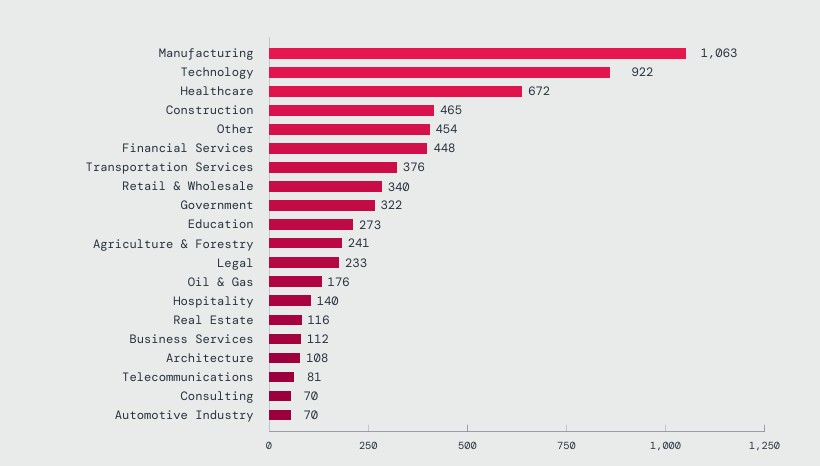 Il report elenca i comparti più bersagliati dalle operazioni ransomware: guidano la classifica manifatturiero (1.063 attacchi), tecnologico (922) e sanitario (672). La scelta dei target non è casuale: imprese manifatturiere globalizzate hanno supply chain estese, le aziende tech sono ricche di proprietà intellettuali, gli ospedali custodiscono dati sanitari di valore strategico: in tuti i casi un’interruzione o una fuga di dati può mettere in ginocchio l’attività nell’arco di poche ore.