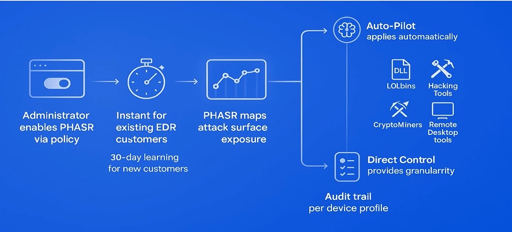 Una precisazione fondamentale è che PHASR si integra in modo nativo con sistemi come i domini Microsoft aziendali e sfrutta queste fonti per associare rapidamente utenti a specifici reparti. Tuttavia, la costruzione del profilo utente non si limita mai al ruolo dichiarato in Active Directory: il centro nevralgico della soluzione resta l’osservazione concreta dell’uso effettivo delle applicazioni, dei privilegi richiesti e delle abitudini operative su ciascun endpoint, così da creare policy realistiche e aggiornate in tempo reale.