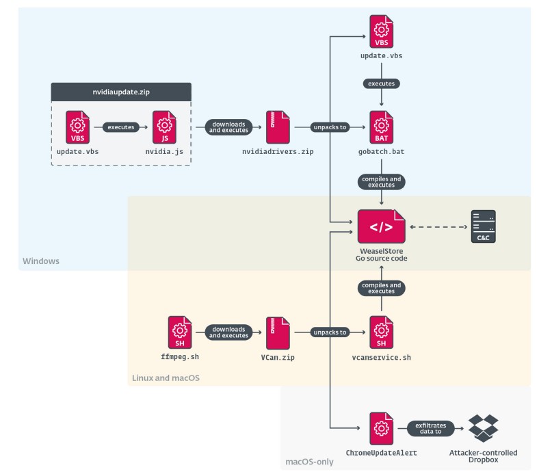 Catena di compromissione di WeaselStore per Windows, Linux e macOS