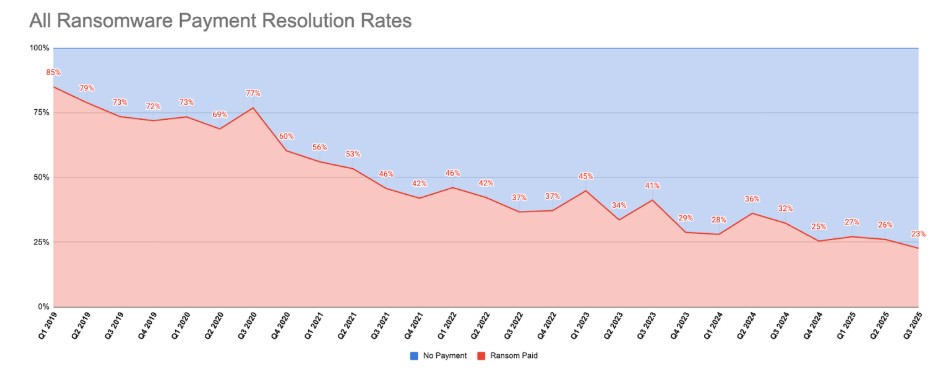 Nel terzo trimestre 2025 il pagamento dei riscatti ransomware è crollato al 23%, il livello più basso mai registrato, grazie alla crescente maturità delle aziende e a nuove best practice.