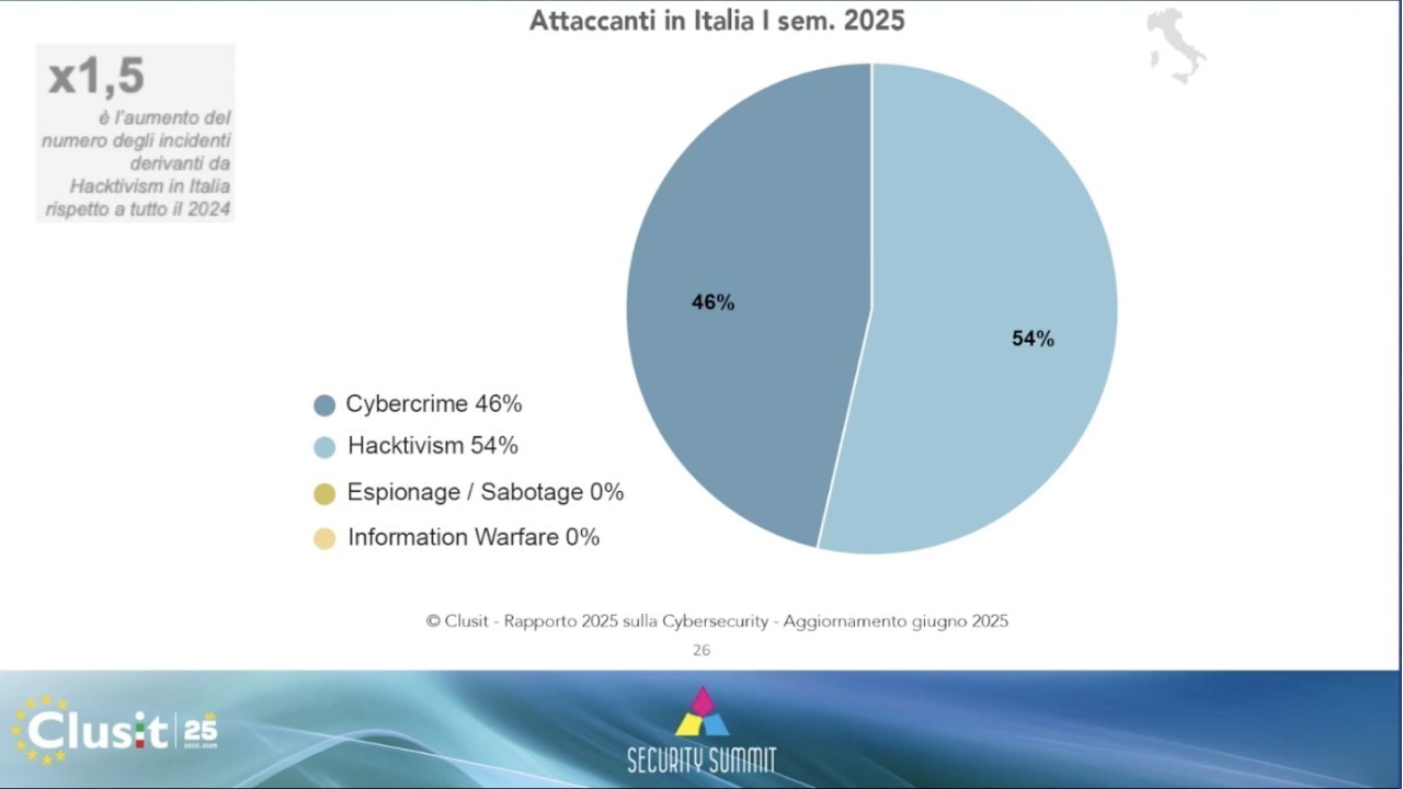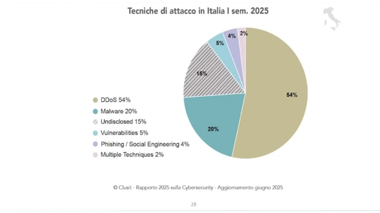 Gli eventi a livello globale nel primo semestre 2025 sono aumentati del 36%, nel nostro paese del 13%. L'Italia resta una delle nazioni più attaccate, ma gli incidenti provocano mediamente meno danni