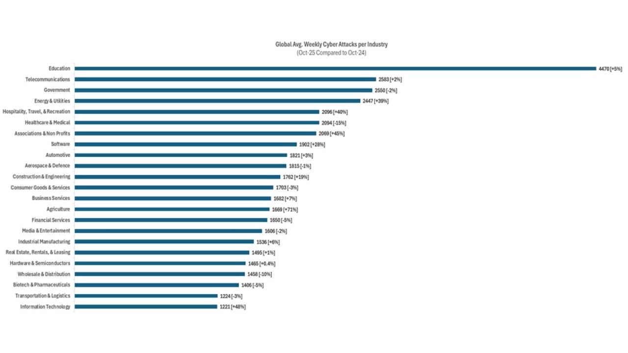 In Italia, a ottobre 2025 si sono registrati 2.249 attacchi informatici settimanali. Il ransomware cresce del 48% e spazia in ogni settore.