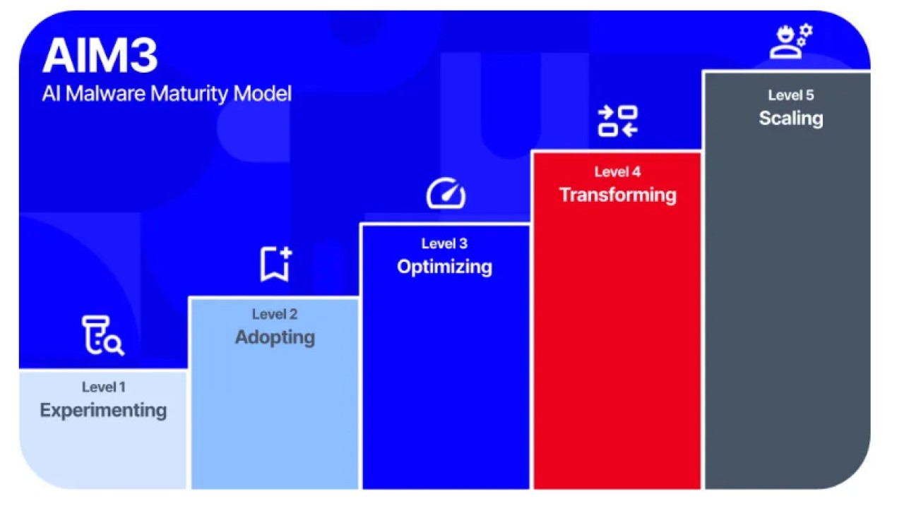Per mettere ordine in questo complesso tema, Recorded Future propone il modello AIM3 a cinque livelli per misurare la maturità del malware AI. Al Livello 1 (Sperimentazione) si trovano prototipi, esempi accademici e PoC che testano la GenAI in scenari dannosi, senza ambizioni operative reali. Il Livello 2 (Adozione) descrive l’integrazione dell’AI in flussi di lavoro esistenti quali per esempio la scrittura di testi per il phishing, la generazione di codice, la ricerca automatizzata di obiettivi.