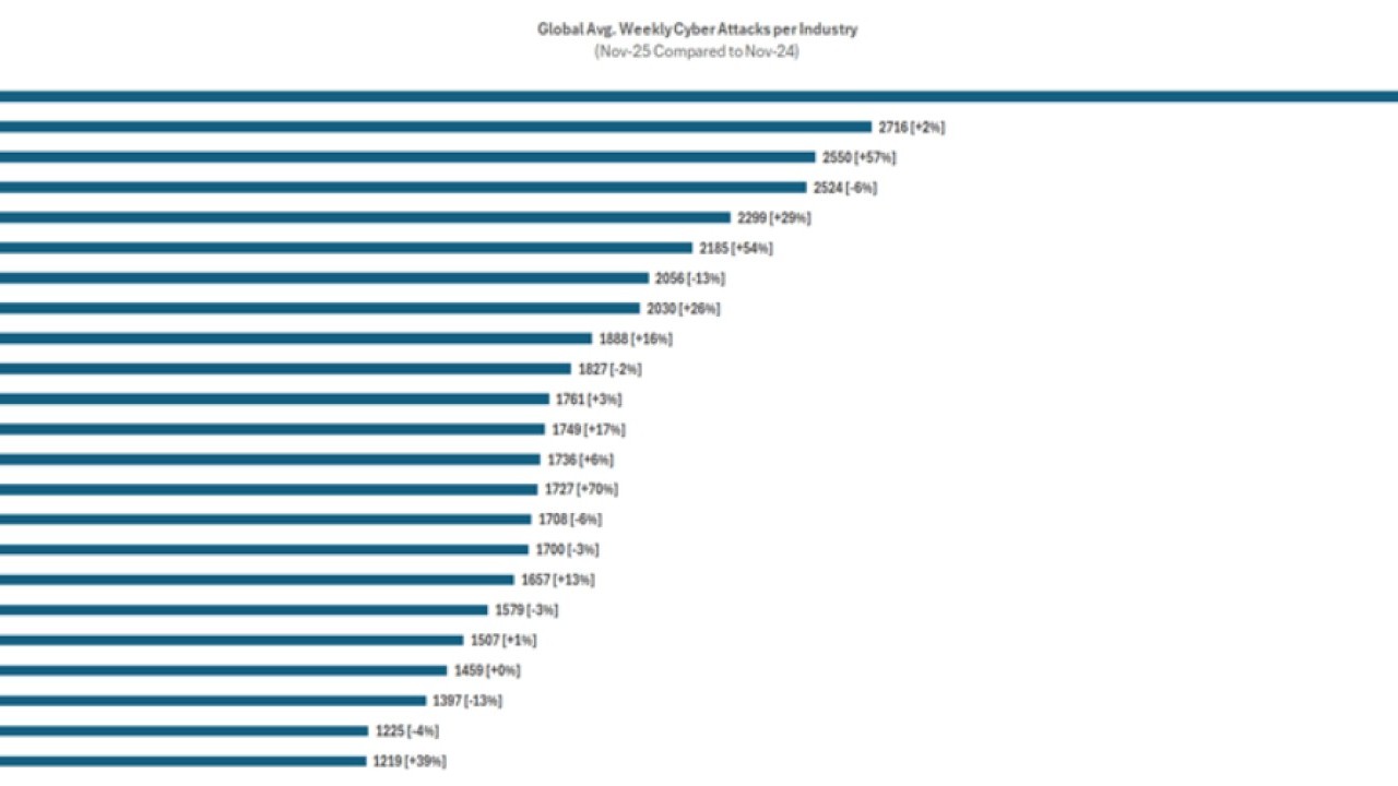 A livello mondiale, il settore dell’istruzione resta il più colpito, con una media di 4.656 attacchi settimanali per organizzazione (+7% su base annua). Seguono le istituzioni governative con 2.716 attacchi a settimana (+2%) e le associazioni e organizzazioni no profit, che segnano un incremento significativo (+57%) raggiungendo 2.550 attacchi settimanali.