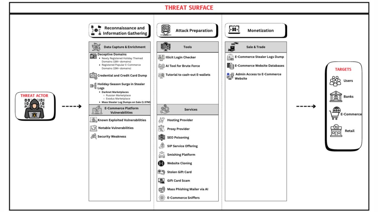 Siamo nel periodo dell’anno in cui crescono domini ingannevoli, offerte di credenziali rubate nel dark web e attacchi alle piattaforme e‑commerce. I marketplace criminali sono sempre più attrezzati.