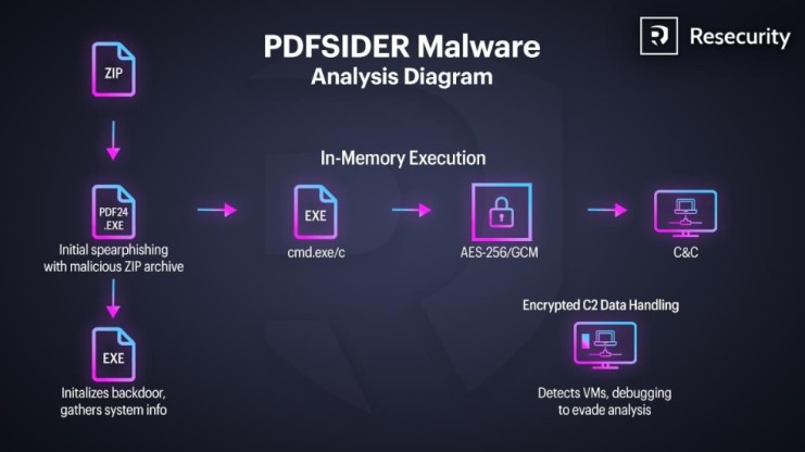I ricercatori di Resecurity hanno rintracciato VPS noleggiati presso provider commerciali per la gestione delle comunicazioni, in modo da nascondere il traffico dati sospetto in mezzo a richieste apparentemente legittime. Non solo: PDFSIDER integra una serie di controlli ambientali mirati a riconoscere sandbox automatiche e macchine virtuali usate dai team di cybersecurity.