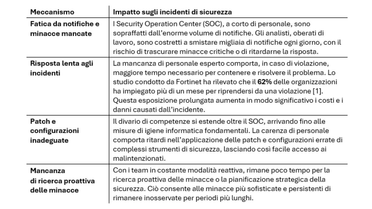 L’edizione del 2025 del Global Cybersecurity Skills Gap Report mostra che la carenza di personale qualificato si traduce direttamente in incidenti di sicurezza attraverso diversi meccanismi chiave: