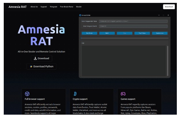 Neutralizzate le barriere difensive, entra in scena Amnesia RAT, un trojan di accesso remoto con ampie capacità di spionaggio e controllo del sistema. Raccoglie credenziali e dati da browser, wallet di criptovalute e client come Discord, Steam e Telegram, insieme a metadati di sistema, screenshot, immagini dalla webcam, registrazioni audio dal microfono, contenuti degli appunti e titoli delle finestre attive, e invia tutto agli attaccanti tramite HTTPS e le API di Telegram. Quando i dataset sono particolarmente voluminosi, ricorre a servizi di file hosting come GoFile e condivide i link di download sempre attraverso Telegram.