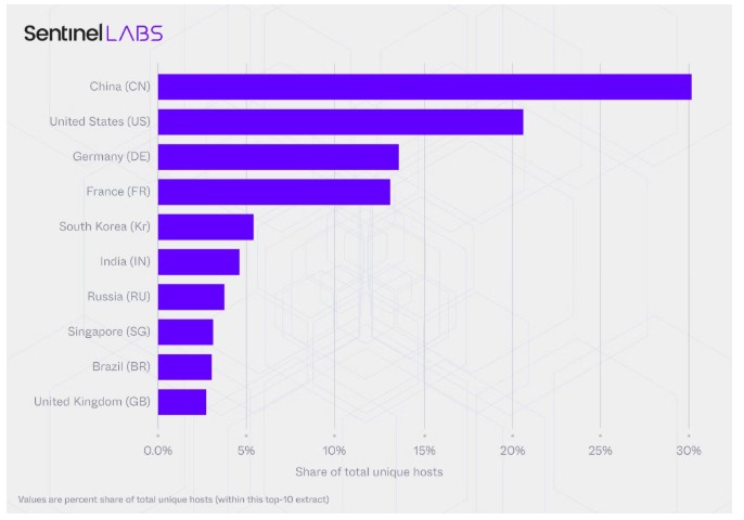 La Top 10 dei Paesi per numero di host unici ospitati