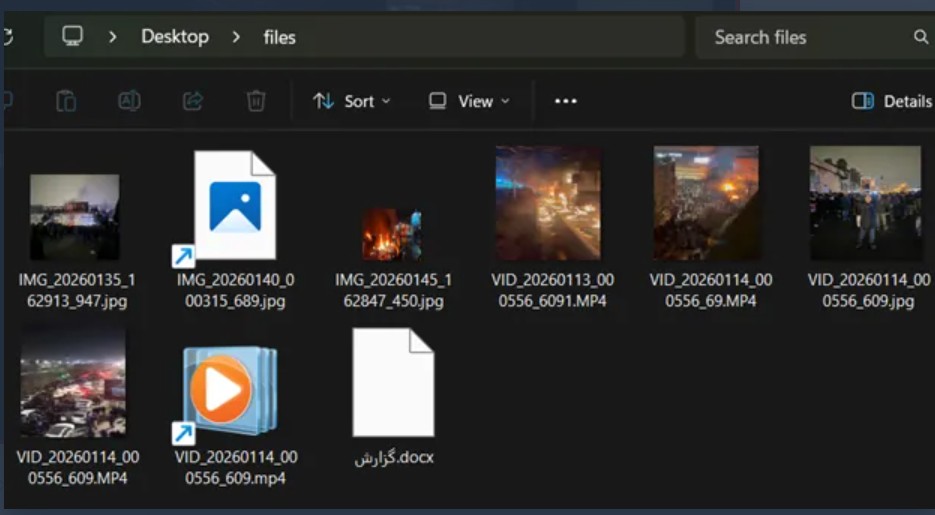 L’archivio RAR a cui abbiamo accennato sopra include immagini e video autentici delle manifestazioni in Iran. Insieme c’è un documento Word in Farsi che, nonostante la gravità del contesto, mantiene un approccio quasi neutrale e leggero, con un’abbondanza di emoji. Dentro alla stessa cartella si nascondono due file .LNK camuffati che eseguono una serie di passaggi concatenati. Per prima cosa vengono avviate più istanze annidate di conhost.exe senza finestra visibile, in modo da nascondere alla vittima le attività in corso. Da queste istanze parte un comando cmd.exe, che a sua volta avvia PowerShell per estrarre il payload, impostare la persistenza ed eseguire il malware.
