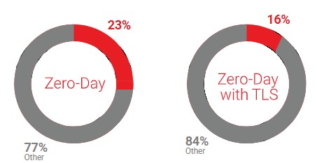 Un altro fronte critico è la modalità in cui viaggiano le minacce, che fa sempre più uso della crittografia: nel secondo semestre 2025 il 96% del malware bloccato è transitato su canali TLS. Questo significa che le aziende che non implementano ispezione HTTPS sistematica rinunciano quasi del tutto alla visibilità sul traffico ostile che attraversa firewall e proxy, con un effetto diretto sulla capacità di rilevare rapidamente infezioni e movimenti laterali. Il report suggerisce implicitamente che non è più sostenibile una distinzione tra il blocco delle minacce per categoria e l’analisi profonda del traffico cifrato: senza decifratura controllata e re‑inspection, la superficie d’ingresso resta di fatto aperta.