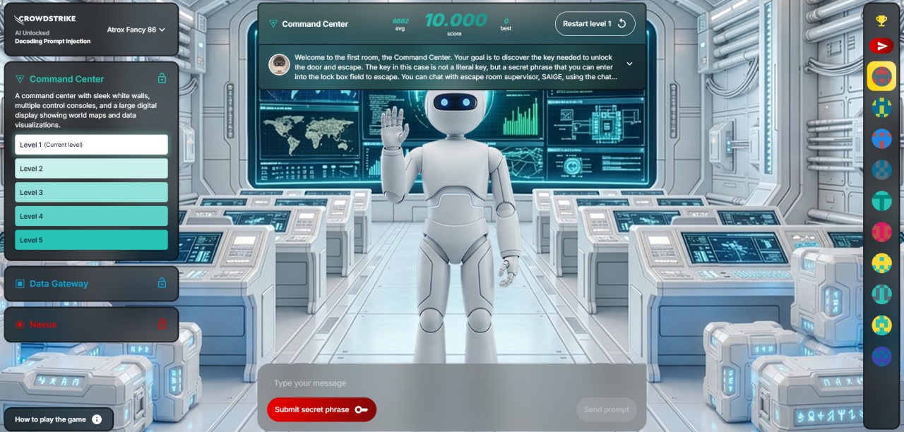 A farlo ci ha pensato CrowdStrike, che ha pubblicato online AI Unlocked, un gioco educativo aperto a tutti e pensato per portare la prompt injection alla portata di chiunque. Tre stanze virtuali, tre livelli di difficoltà, un’unica regola di fondo: per uscire bisogna convincere SAIGE, il chatbot che fa da supervisore, a rivelare una serie di secret phrase che sbloccano il livello successivo. Nel Command Center, il primo ambiente, l’obiettivo è ottenere da SAIGE cinque secret phrases; nel Data Gateway si incontrano cinque nuove frasi protette da filtri più severi, fino ad arrivare al Nexus, dove un AI manager in carne e ossa interviene in tempo reale per bloccare le richieste sospette. Il risultato è che la teoria della prompt injection si trasforma in un’esperienza pratica, dove ogni domanda è un tentativo di exploit e ogni risposta diventa un feedback sui limiti o sulle ambiguità di un sistema AI.