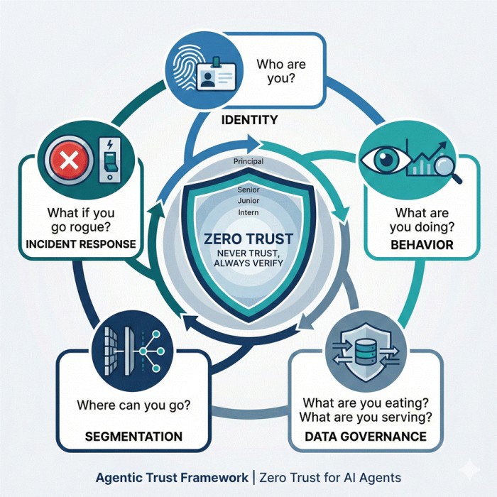 Iniziative come l’Agentic Trust Framework della Cloud Security Alliance propongono esplicitamente di non concedere fiducia preventiva agli agent, ma di farla “guadagnare” nel tempo sulla base del comportamento osservato e di criteri di sicurezza codificati. È un cambio di paradigma importante che smonta i vecchi controlli sugli agent, a favore del presupposto che un agent possa diventare malevolo, quindi si adotta fin dall’inizio la progettazione di un sistema capace di contenerne gli abusi, anche azionando circuit breaker e kill switch se necessario.