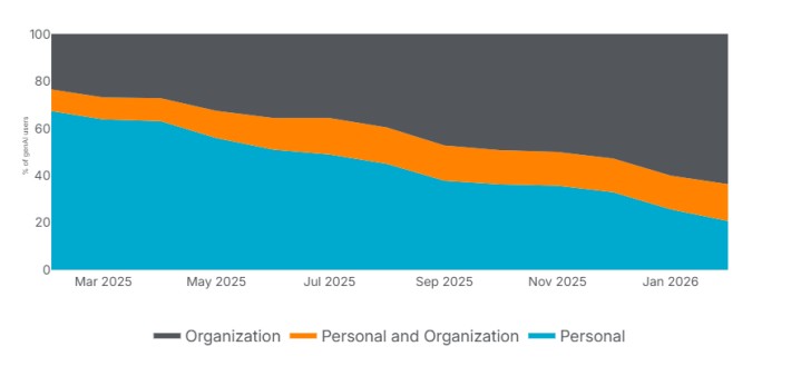 Peccato che la transizione non sia completa. La quota di utenti che continua a muoversi tra account personali ed enterprise è cresciuta dal 9% al 15%, che è l’esatta definizione del perimetro grigio in cui i dati regolamentati escono dai circuiti controllati. Il dato indica che le organizzazioni hanno sì costruito l'infrastruttura di governance, ma non hanno ancora risolto il problema della user experience, dato che gli utenti continuano a faticare pur di usare versioni personali degli strumenti legittimamente approvati.