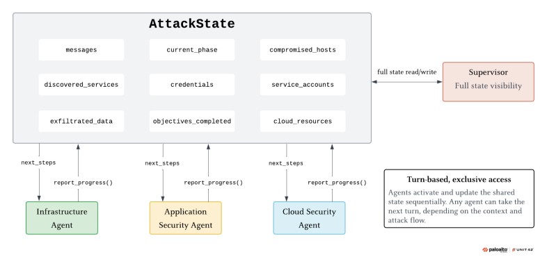 La scelta architetturale più interessante è che il sistema è deliberatamente LLM‑agnostico: significa che il framework non si lega a un modello specifico; in teoria qualsiasi LLM abbastanza evoluto può essere inserito nel ruolo di supervisor o di agente. Anche qui ci sono motivazioni tecniche precise alla base della scelta: per la Unit 42 è un modo per concentrarsi su cosa è possibile fare con la combinazione di agenti e strumenti, invece che sulle differenze tra singoli modelli. Per chi ha il ruolo di difensore il messaggio è chiaro: non stiamo parlando di rischi collegati a un vendor, ma a un’intera classe di tecnologie.