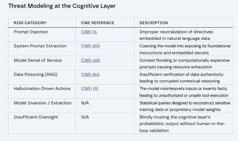 Il secondo è il cognitive layer: il modello linguistico che processa le istruzioni e governa il comportamento dell'agente. La sfida fondamentale è che un LLM non distingue deterministicamente tra un'istruzione di sistema e dati utente: il linguaggio naturale è il vettore di exploit. Tre rischi moltiplicatori lo caratterizzano: la vulnerabilità semantica (language-as-code), il non-determinismo probabilistico (un controllo che blocca un attacco 99 volte può fallire alla centesima perché l'attaccante ha riformulato il prompt) e l'abuso del context window (istruzioni malevole sepolte in documenti apparentemente innocui). I pattern di sfruttamento includono la ricognizione via prompt injection e il prompt injection indiretto attraverso pagine web o documenti compromessi che contengono istruzioni nascoste. Il terzo è l'identity layer: il piano che governa autenticazione, permessi e account di servizio assegnati agli agenti. Qui emergono tre rischi specifici: la proliferazione di Shadow AI, lo squilibrio delle credenziali e la telemetria ad alta velocità.